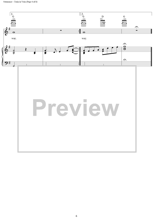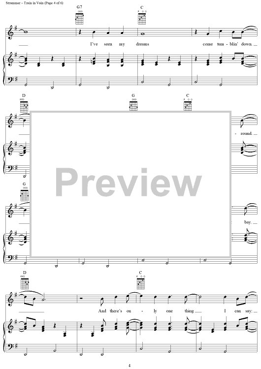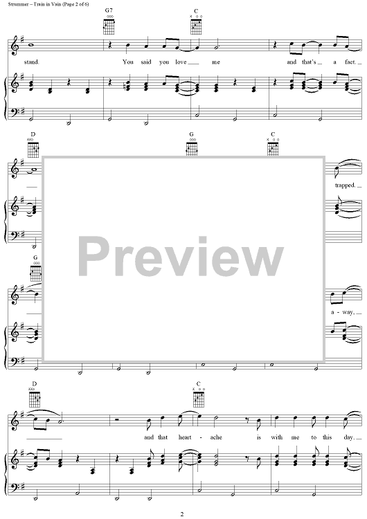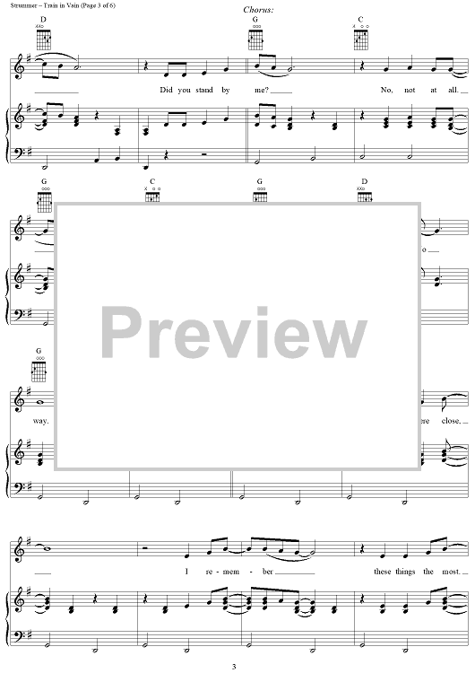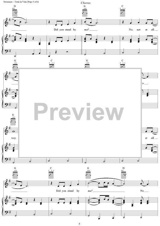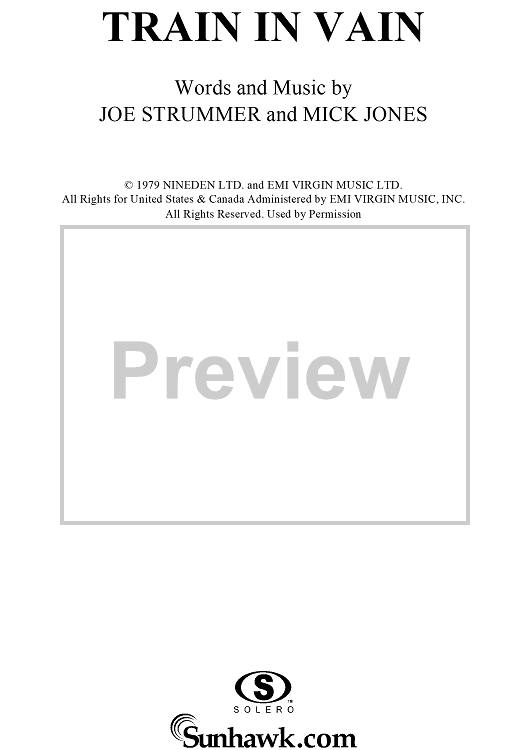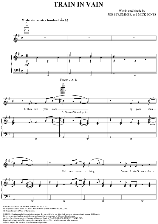 Digital Sheet Music for Train in Vain by Mick Jones, Dwight Yoakam, Joe Strummer scored for Piano/Vocal/Chords; id:259282
