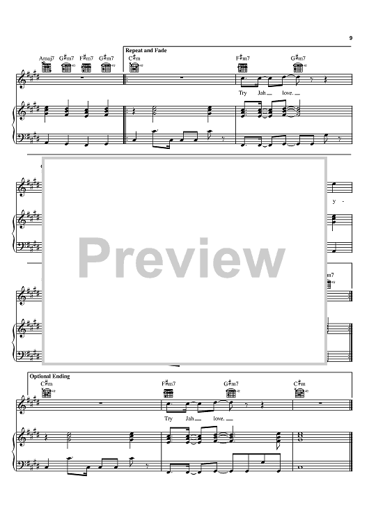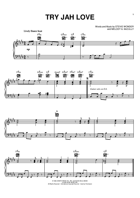Digital Sheet Music for Try Jah Love by Stevie Wonder, Third World, Melody A. McCully scored for Piano/Vocal/Chords; id:387284