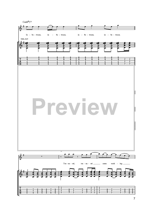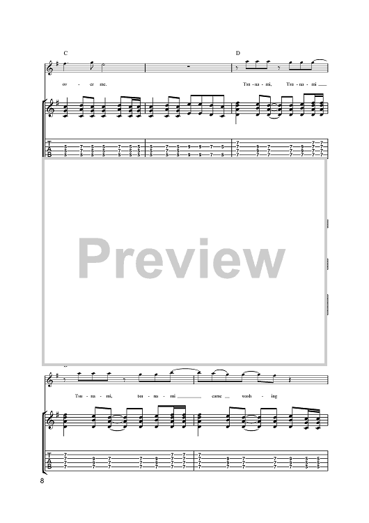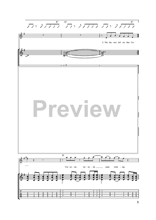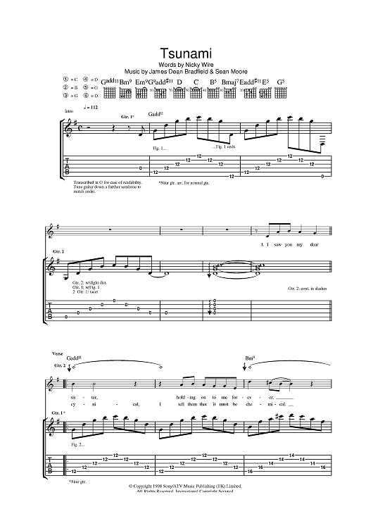 Digital Sheet Music for Tsunami by James Dean Bradfield, The Manic Street Preachers, Sean Moore, Nicky Wire scored for Guitar Tab; id:397973