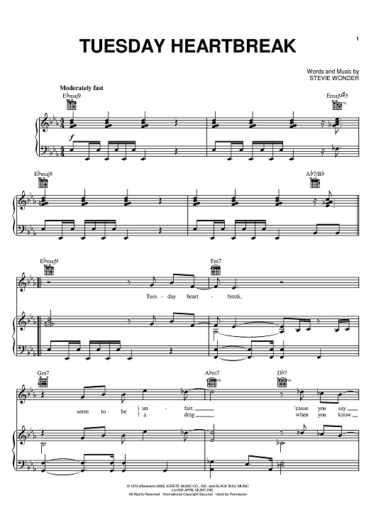Digital Sheet Music for Tuesday Heartbreak by Stevie Wonder scored for Piano/Vocal/Chords; id:394877
