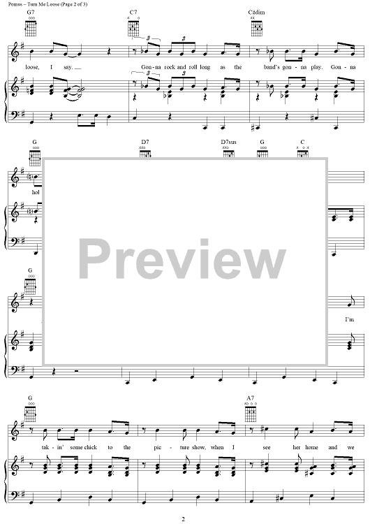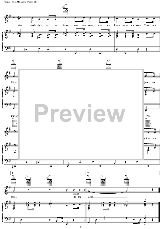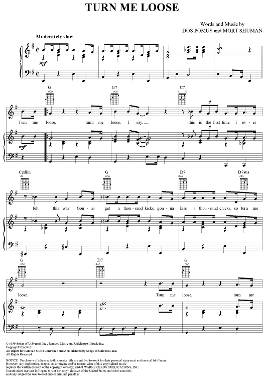 Digital Sheet Music for Turn Me Loose by Doc Pomus, Mort Shuman, Fabian scored for Piano/Vocal/Chords; id:286715