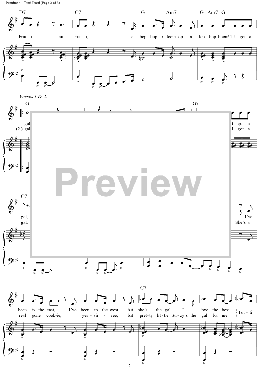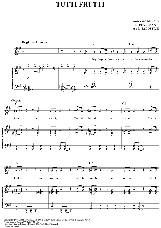 Digital Sheet Music for Tutti Frutti by Little Richard, Dorothy LaBostrie scored for Piano/Vocal/Chords; id:362773