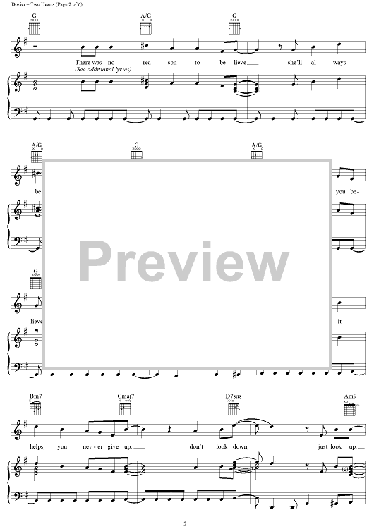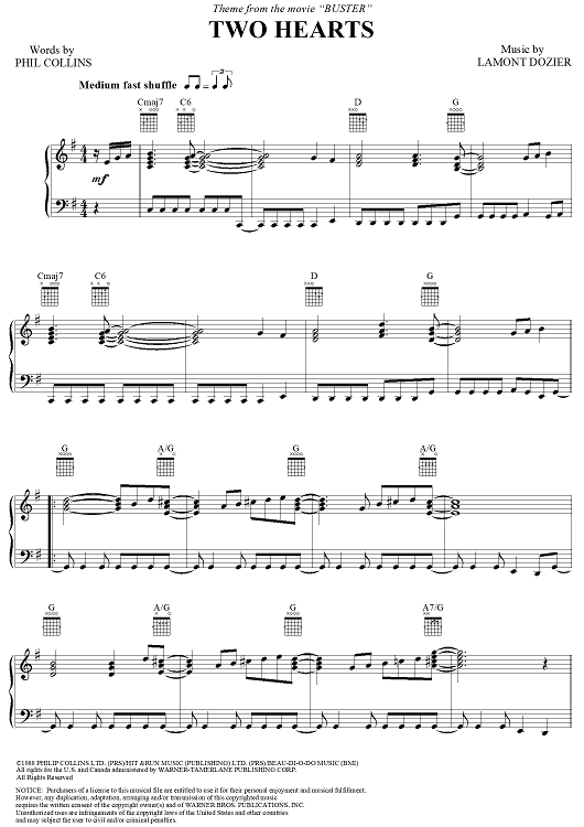 Digital Sheet Music for Two Hearts by Lamont Dozier, Phil Collins scored for Piano/Vocal/Chords; id:271222