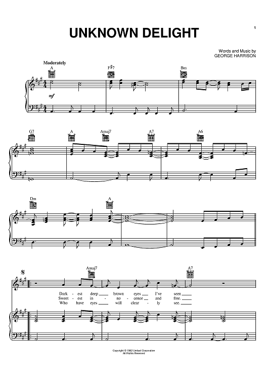Digital Sheet Music for Unknown Delight by George Harrison scored for Piano/Vocal/Chords; id:384909