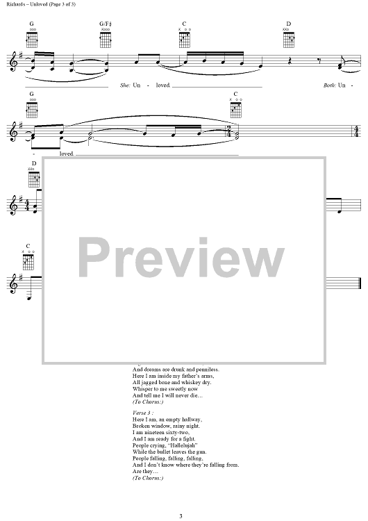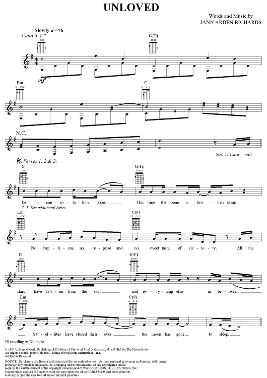 Digital Sheet Music for Unloved by Jann Arden, Jann Arden Richards scored for Easy Guitar/Vocal; id:293554