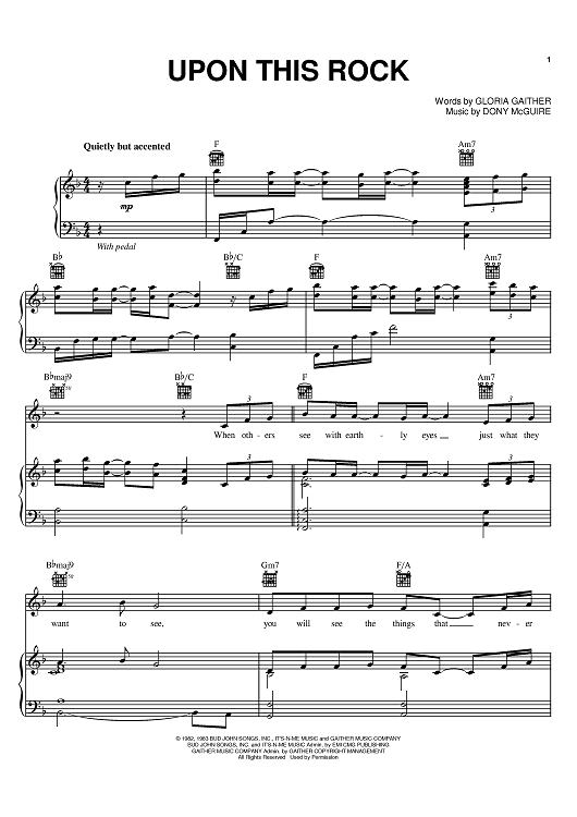 Digital Sheet Music for Upon This Rock by Dony McGuire, Gloria Gaither, Bill Gaither scored for Piano/Vocal/Chords; id:385050