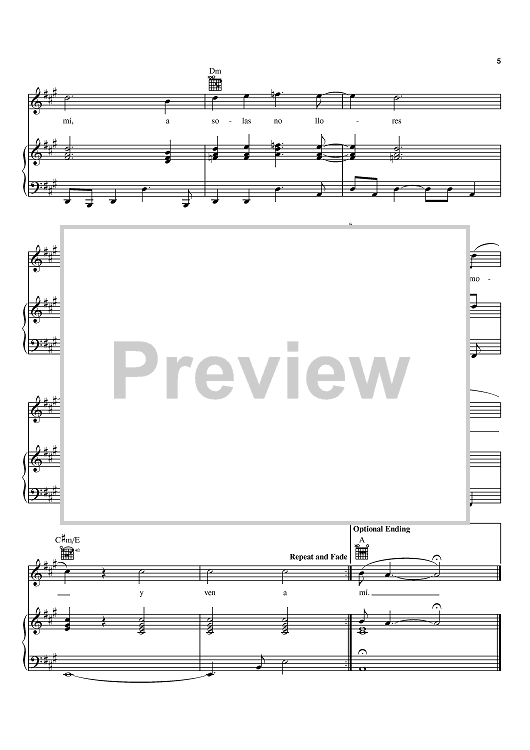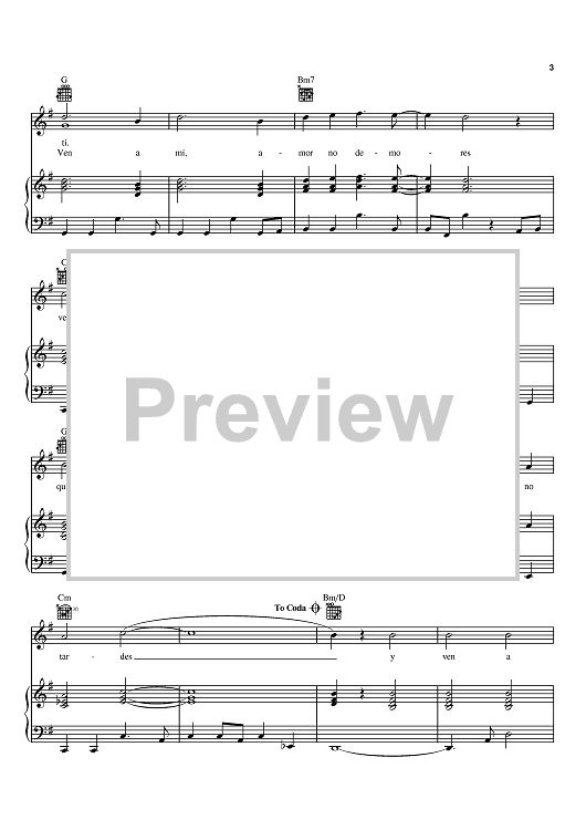 Digital Sheet Music for Ven A Mi by Maurice Gibb, Barry Gibb, Robin Gibb scored for Piano/Vocal/Chords; id:371150