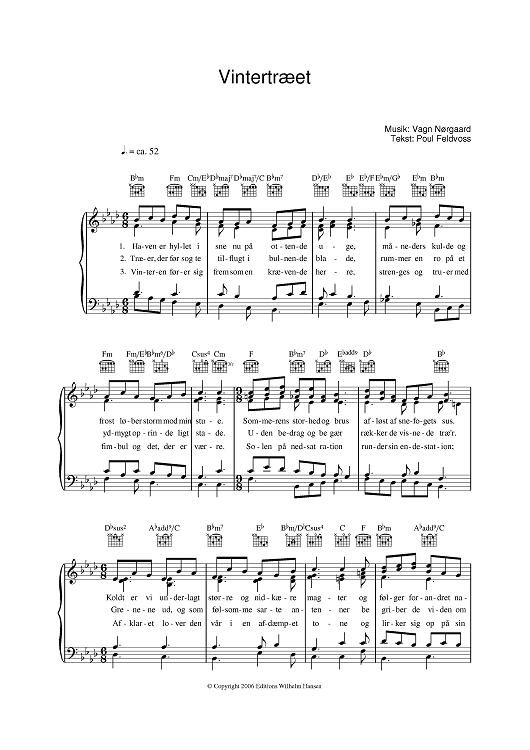Digital Sheet Music for Vintertraeet by Poul Feldvoss, Vagn Norgaard scored for Piano/Vocal/Chords; id:394265
