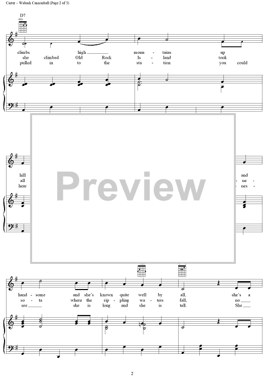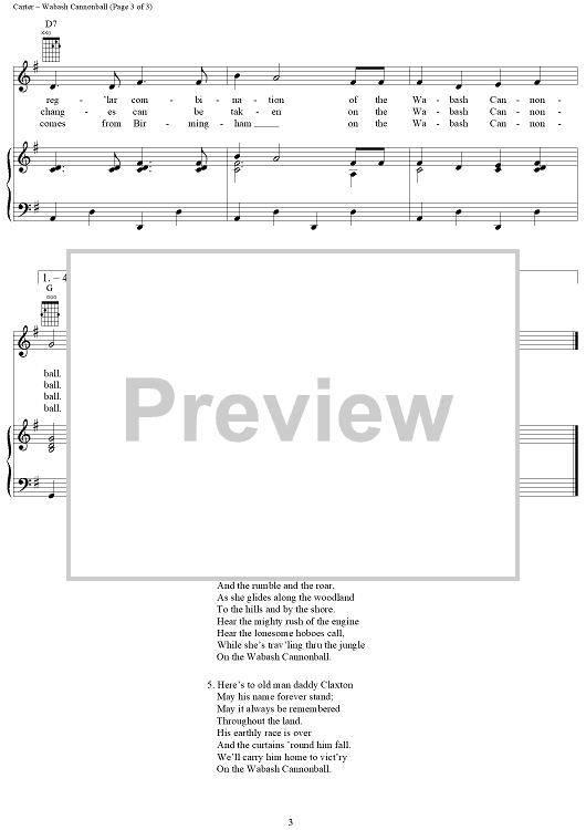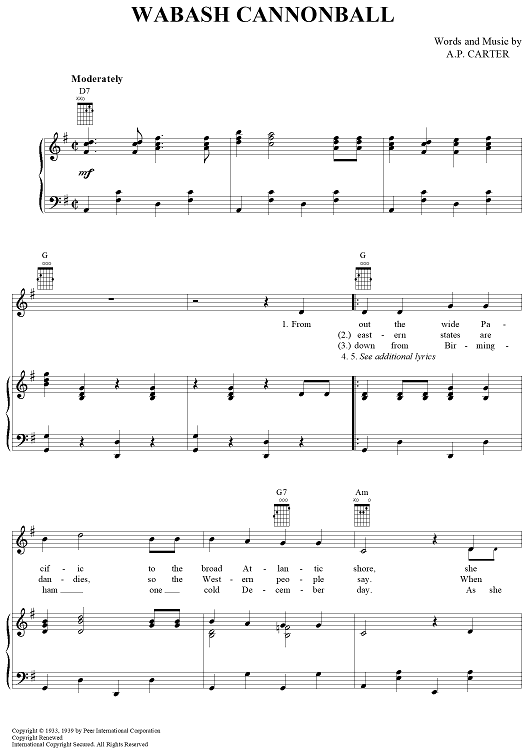 Digital Sheet Music for Wabash Cannonball by The Carter Family, A. P. Carter scored for Piano/Vocal/Chords; id:367942