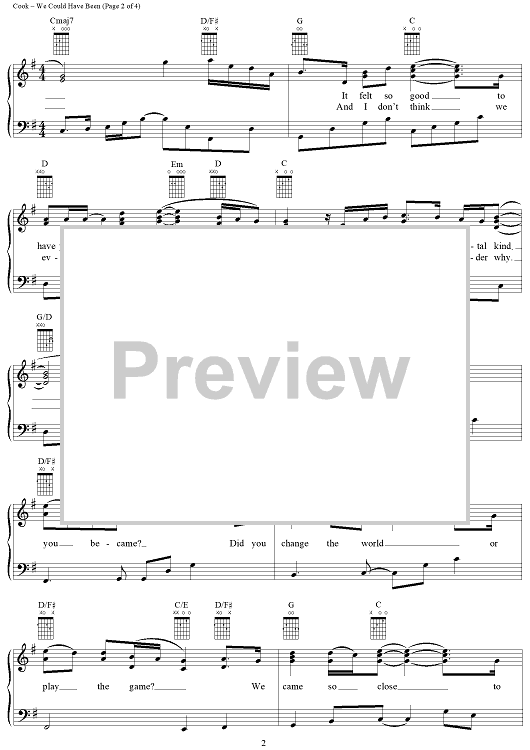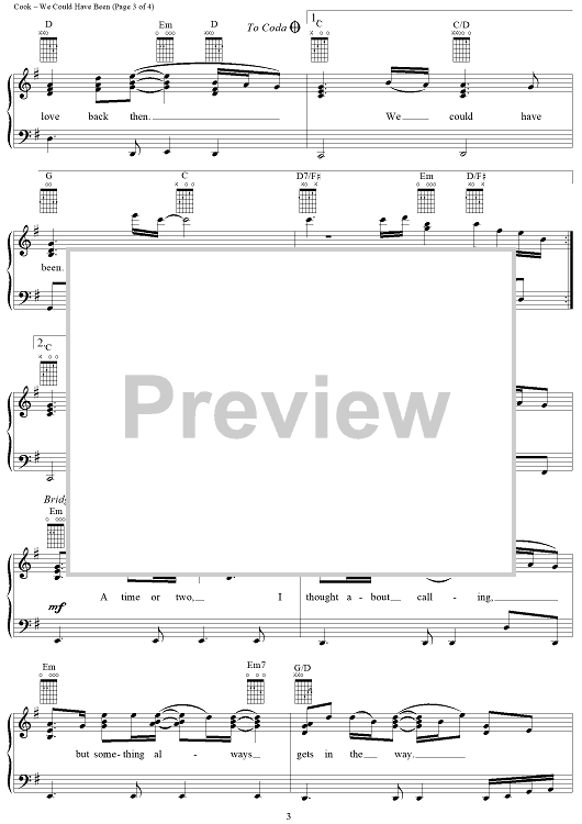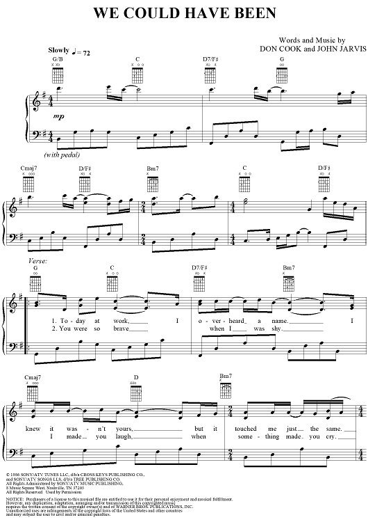Digital Sheet Music for We Could Have Been by Bryan White, John Jarvis, Don Cook scored for Piano/Vocal/Chords; id:113469