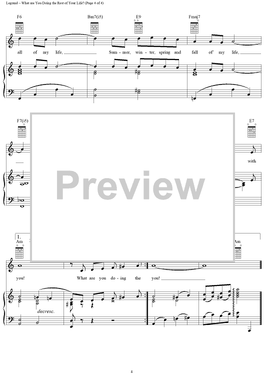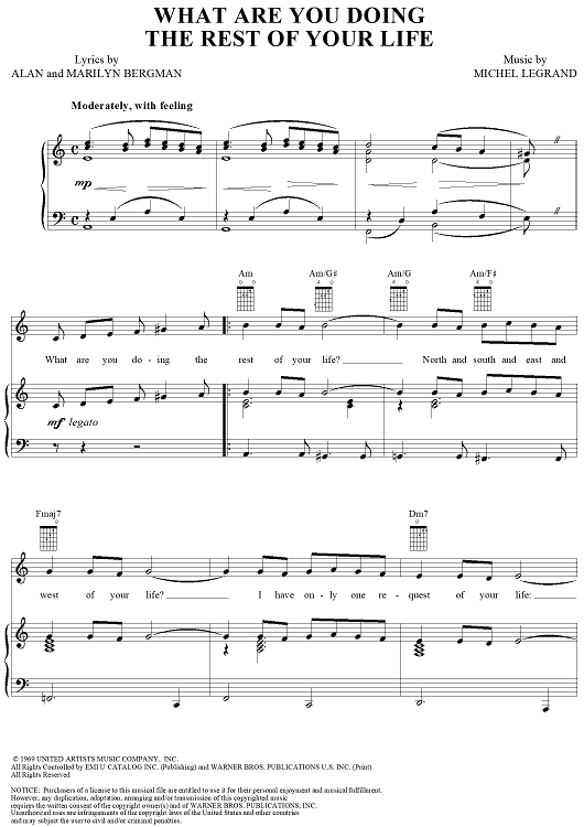 Digital Sheet Music for What Are You Doing the Rest of Your Life? by Michel LeGrand, Alan Bergman, Marilyn Bergman scored for Piano/Vocal/Chords; id:251063
