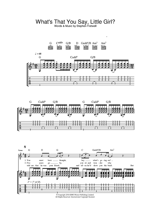 Digital Sheet Music for What's That You Say Little Girl? by Stephen Fretwell scored for Guitar Tab; id:387189