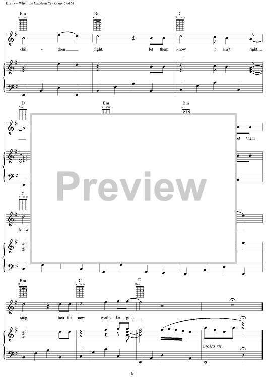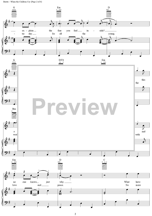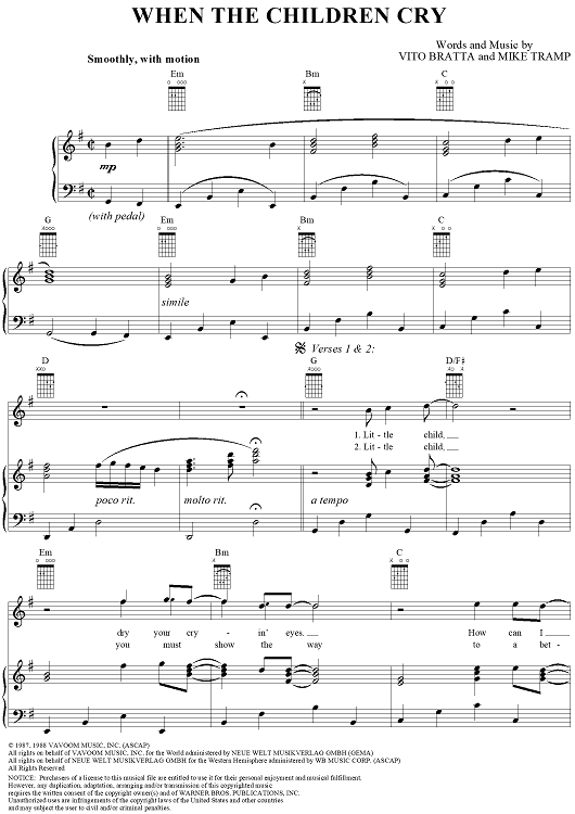 Digital Sheet Music for When The Children Cry by White Lion, Vito Bratta, Mike Tramp scored for Piano/Vocal/Chords; id:241160