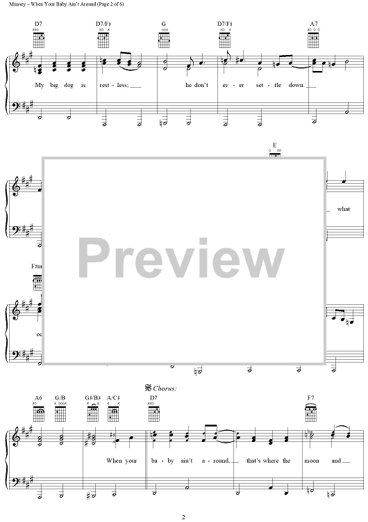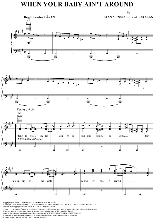 Digital Sheet Music for When Your Baby Ain't Around by John Michael Montgomery, Stan Munsey, Jr., Bob Alan scored for Piano/Vocal/Chords; id:252978