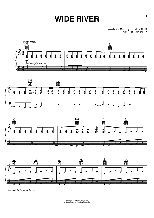 Digital Sheet Music for Wide River by Steve Miller, Chris McCarty, Steve Miller Band scored for Piano/Vocal/Chords; id:386240
