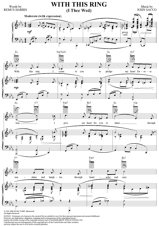 Digital Sheet Music for With This Ring by John Sacco, Remus Harris scored for Piano/Vocal/Chords; id:256342