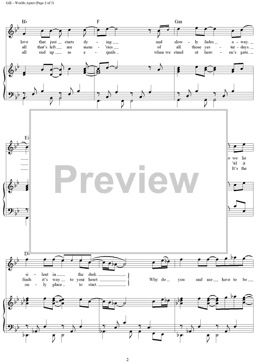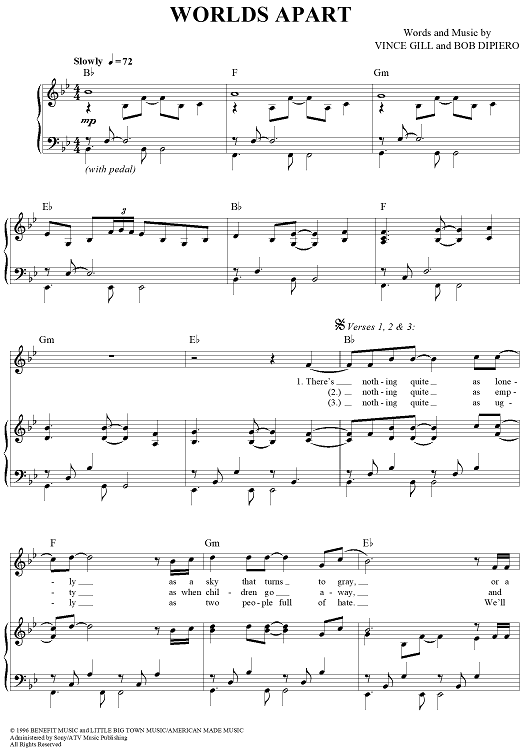 Digital Sheet Music for Worlds Apart by Vince Gill, Bob DiPiero scored for Piano/Vocal/Chords; id:361818