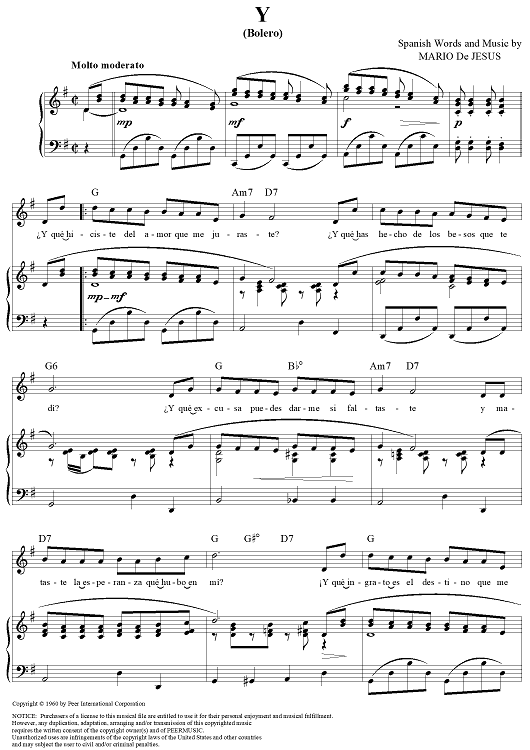 Digital Sheet Music for Y by Eydie Gorme, Mario De Jesus scored for Piano/Vocal/Chords; id:355907
