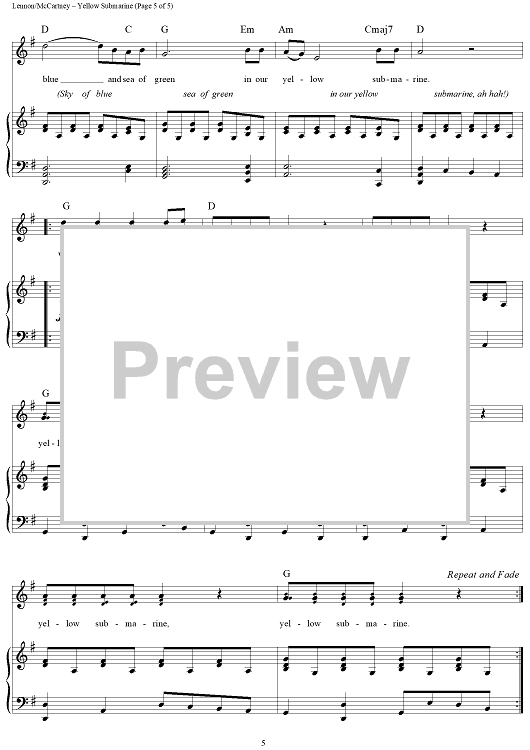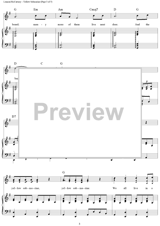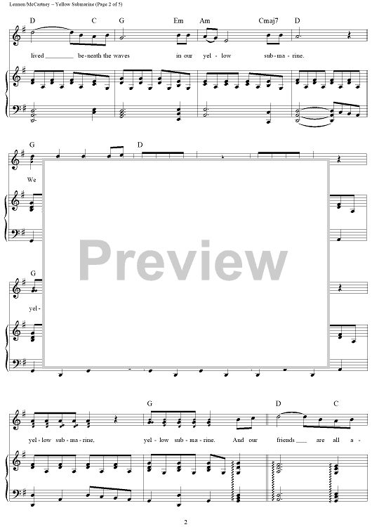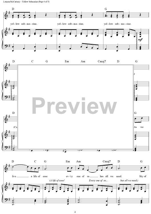 Digital Sheet Music for Yellow Submarine by Paul McCartney, The Beatles, John Lennon scored for Piano/Vocal/Chords; id:364316