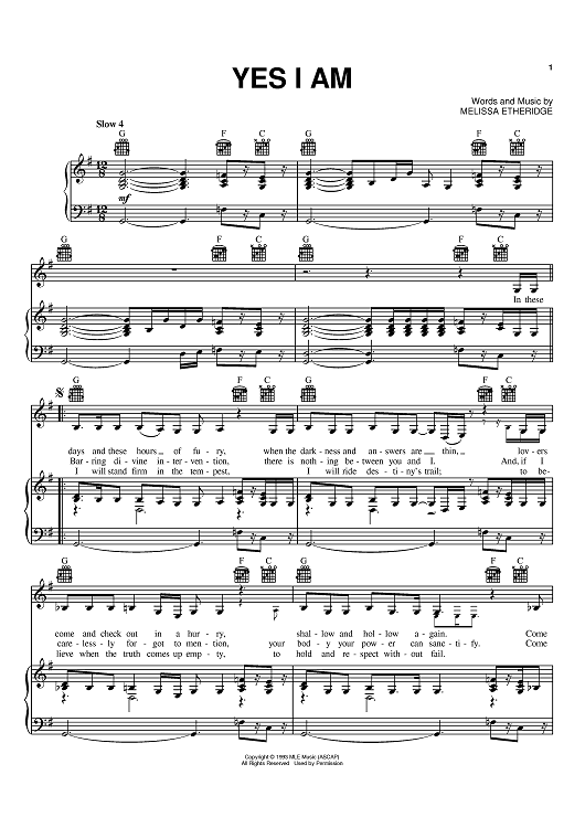 "Yes I Am" Sheet Music by Melissa Etheridge