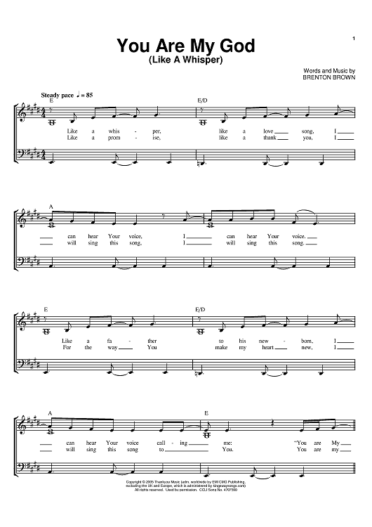 "You Are My God" Sheet Music by Brenton Brown