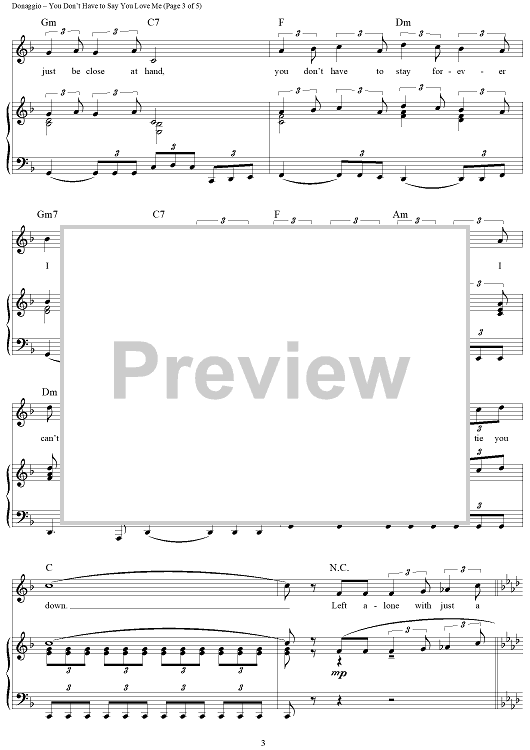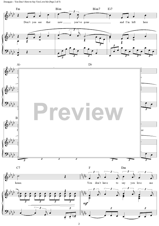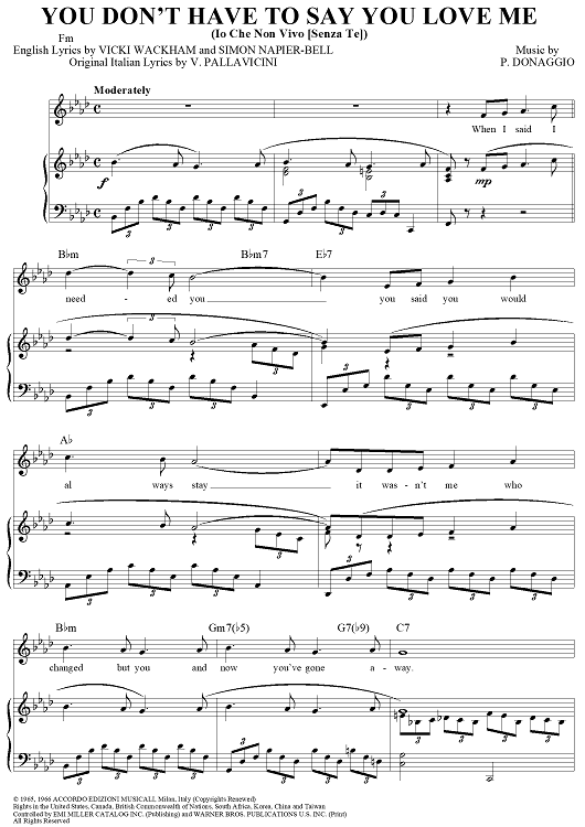Digital Sheet Music for You Don't Have To Say You Love Me by Dusty Springfield, Eddie Fisher, Vicki Wackham, Simon Napier-Bell, V. Pallavicini, Pino Donaggio scored for Piano/Vocal/Chords; id:241653