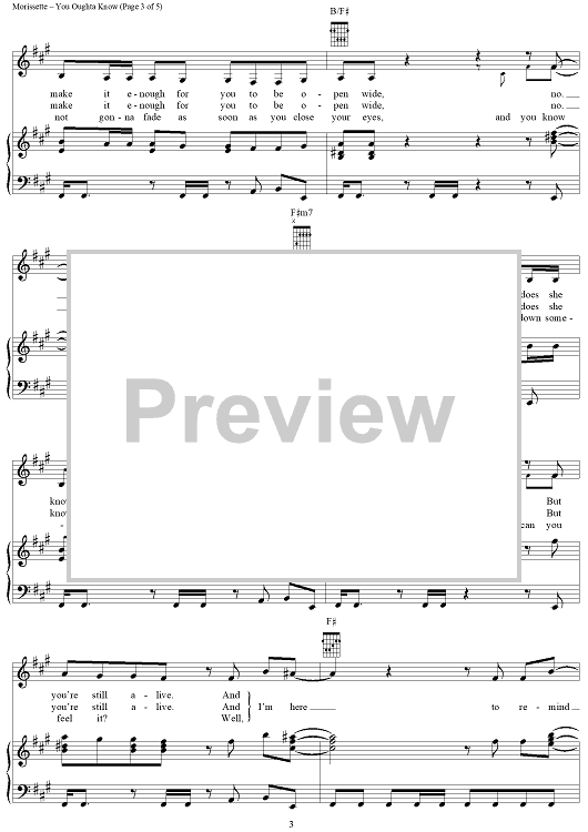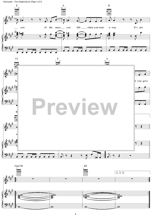 Digital Sheet Music for You Oughta Know by Glen Ballard, Alanis Morissette scored for Piano/Vocal/Chords; id:241391