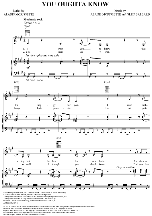 "You Oughta Know" Sheet Music by Alanis Morissette