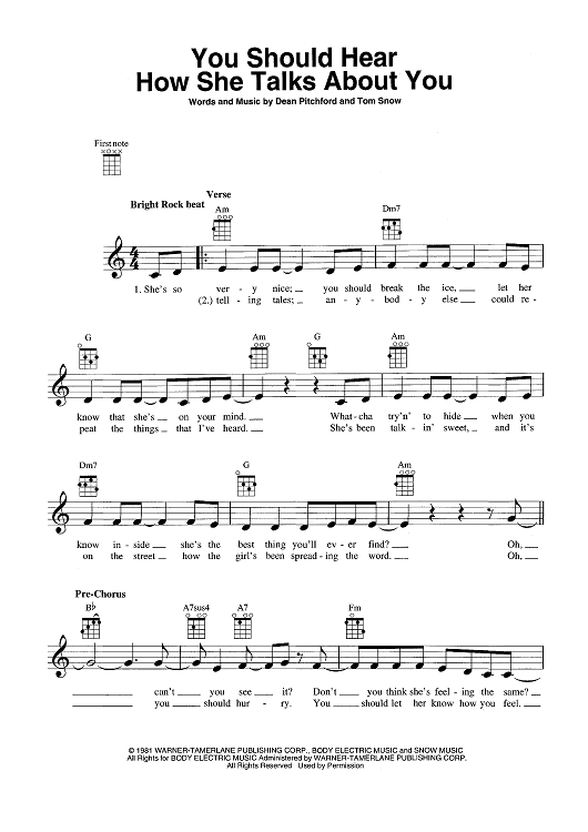 Digital Sheet Music for You Should Hear How She Talks About You by Dean Pitchford, Tom Snow scored for Ukulele/Vocal; id:465309