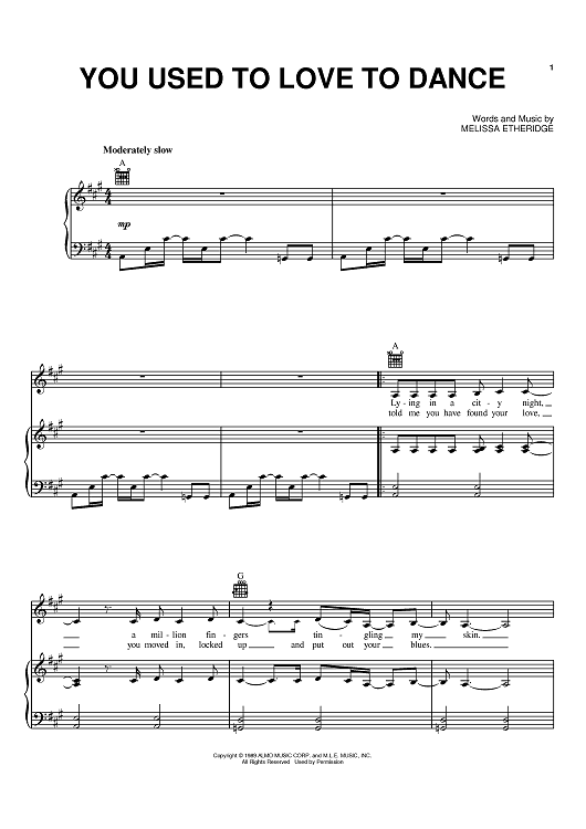 Digital Sheet Music for You Used To Love To Dance by Melissa Etheridge scored for Piano/Vocal/Chords; id:370821