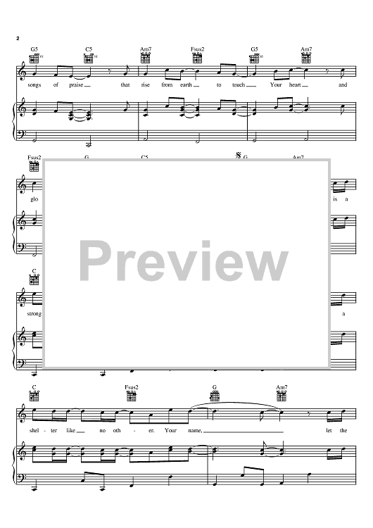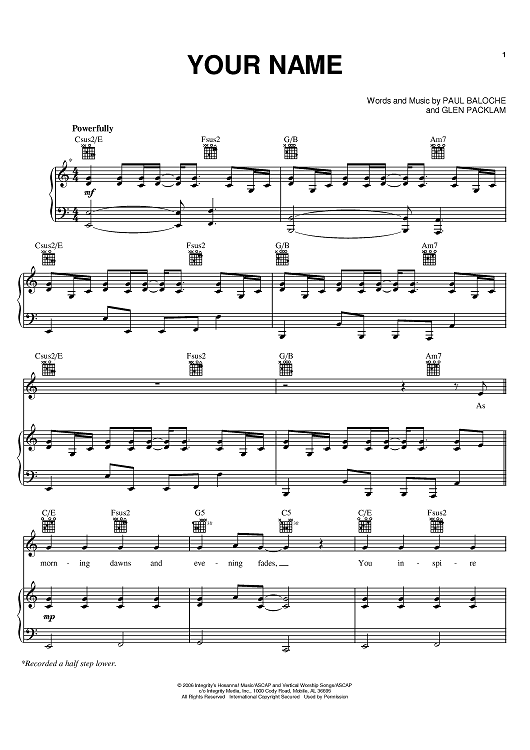 Digital Sheet Music for Your Name by Paul Baloche, Glenn Packiam, Phillips, Craig and Dean scored for Piano/Vocal/Chords; id:394580