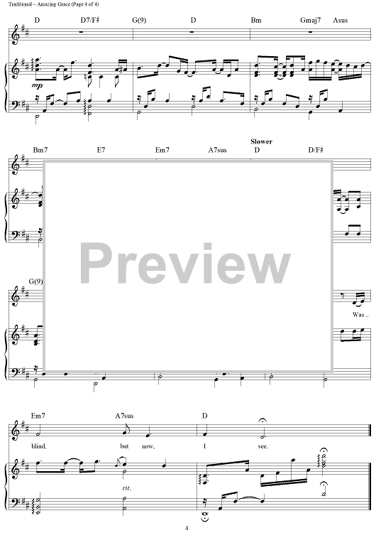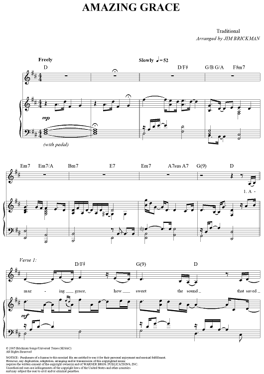 Digital Sheet Music for Amazing Grace by Jim Brickman, Traditional scored for Piano/Vocal/Chords; id:361282
