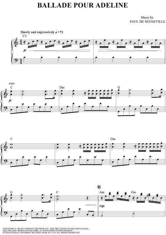Digital Sheet Music for Ballade Pour Adeline by Richard Clayderman, Paul de Senneville scored for Piano Solo; id:443505