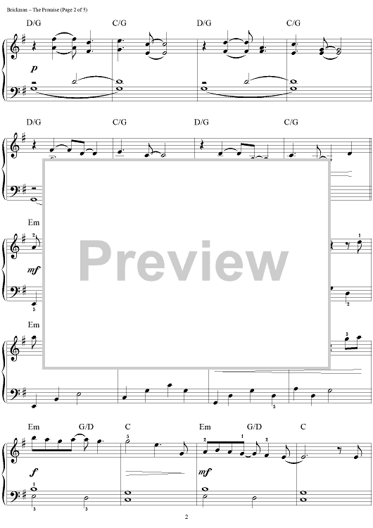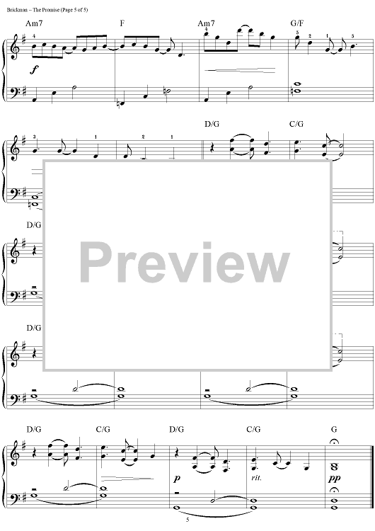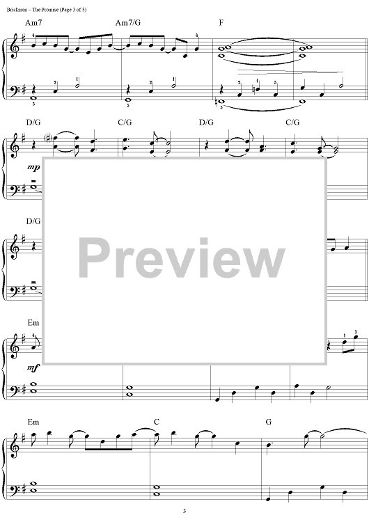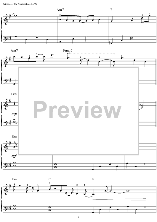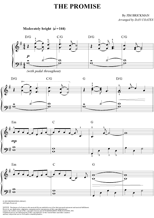Digital Sheet Music for The Promise by Jim Brickman, Dan Coates scored for Easy Piano; id:286768