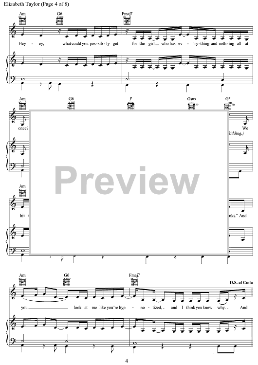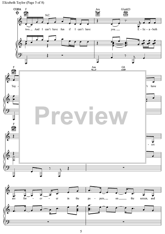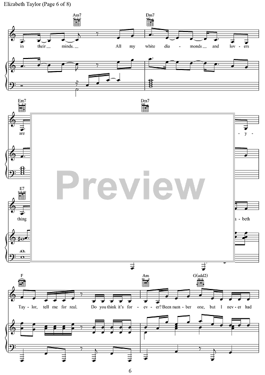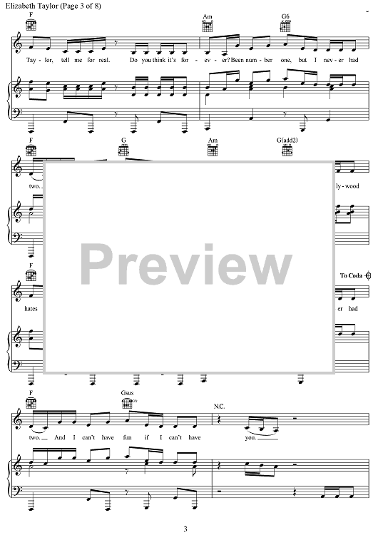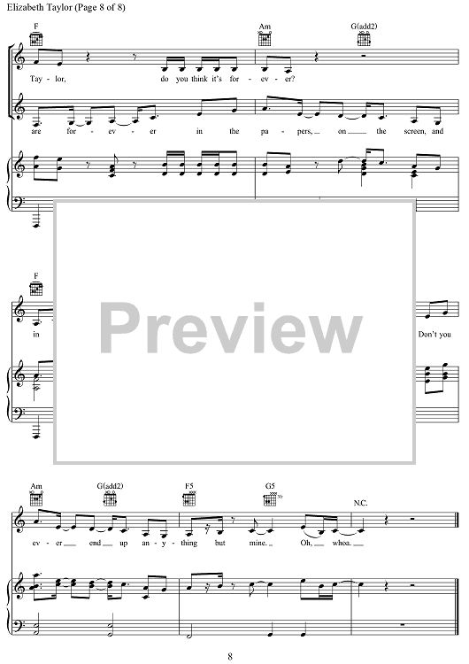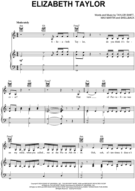 "Elizabeth Taylor" Sheet Music by Taylor Swift