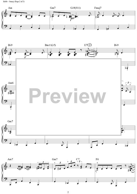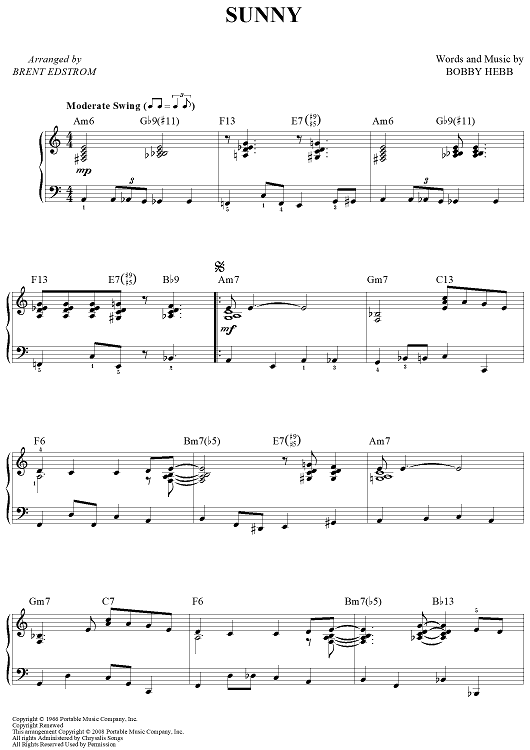 Digital Sheet Music for Sunny by Bobby Hebb, Brent Edstrom scored for Piano Solo; id:462800