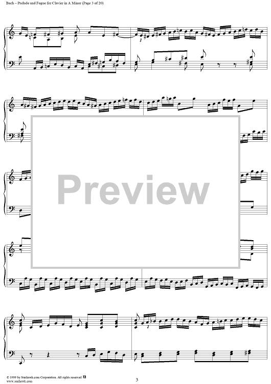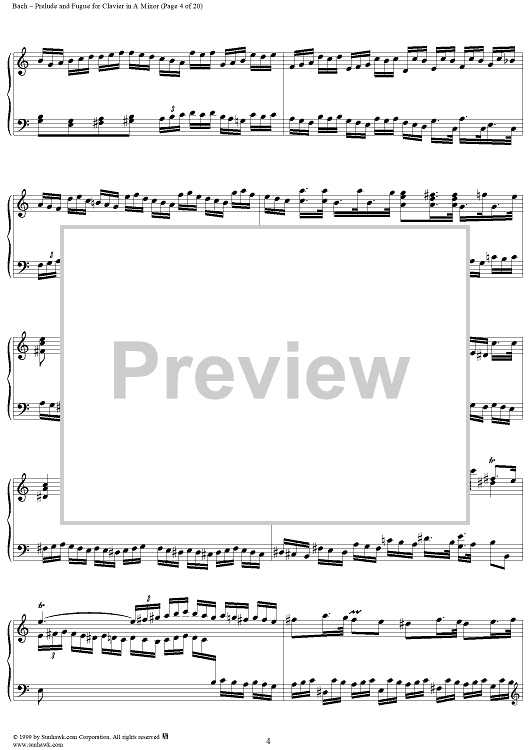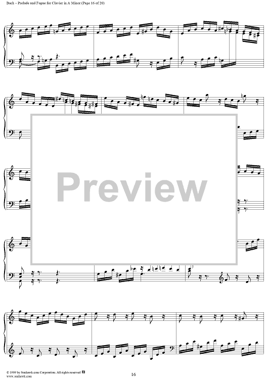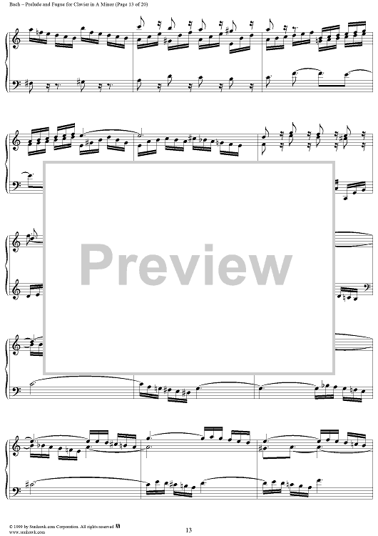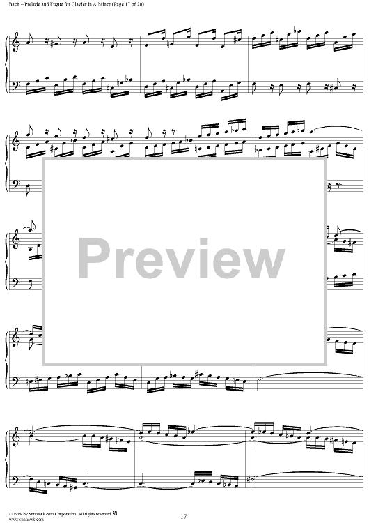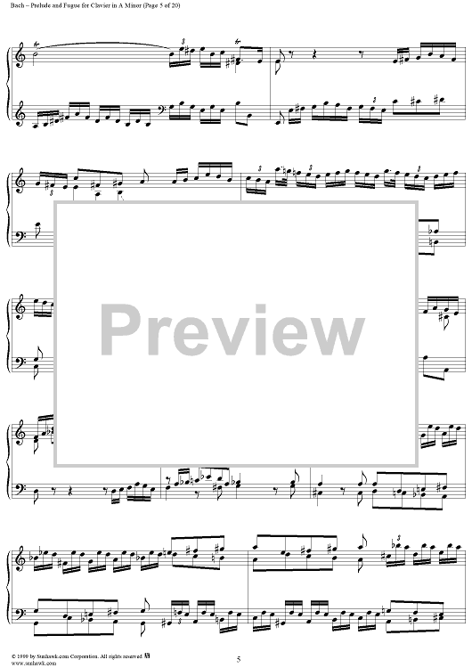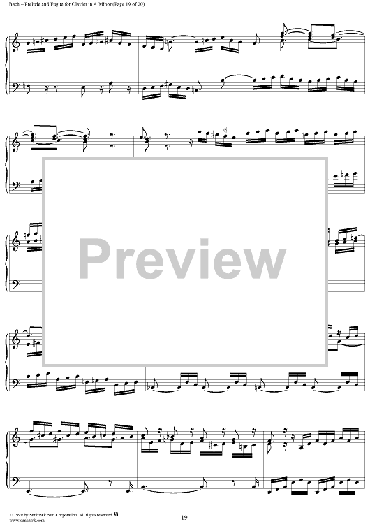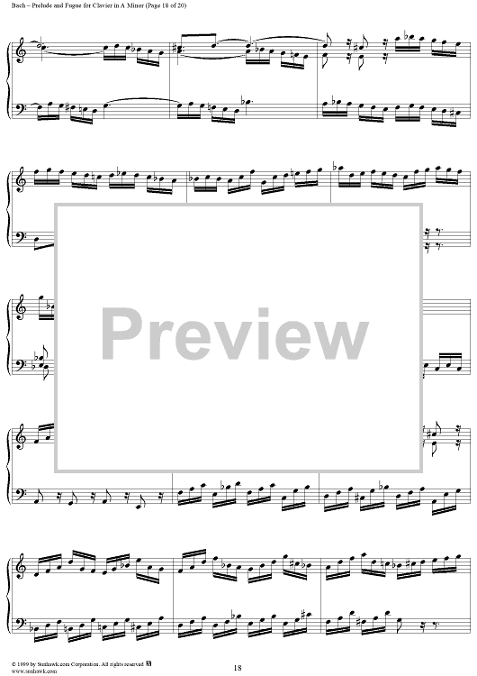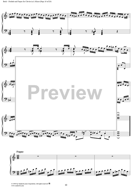 Digital Sheet Music for Prelude and Fugue in A Minor, BWV894 by Johann Sebastian Bach scored for Piano Solo; id:118343
