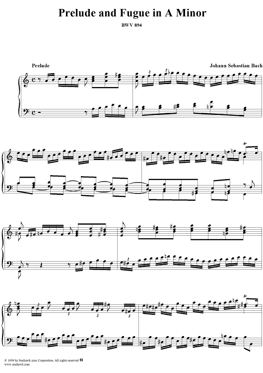 "Prelude and Fugue in A Minor, BWV894" Sheet Music by Johann Sebastian Bach
