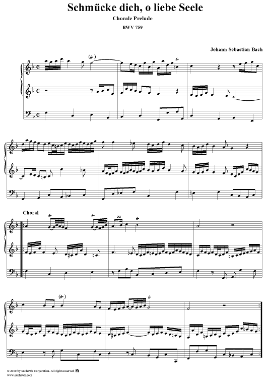 "Schmücke dich o liebe Seele (Chorale Prelude, BWV 759)" Sheet Music by Johann Sebastian Bach