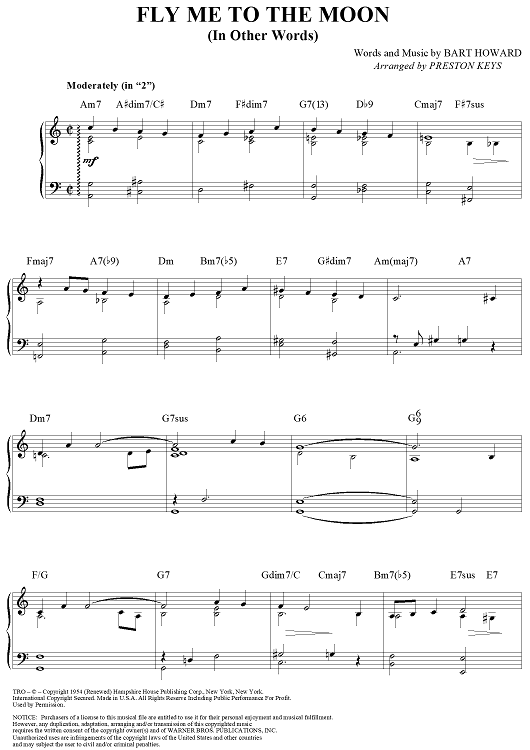 Digital Sheet Music for Fly Me to the Moon (In Other Words) by Bart Howard, Preston Keys scored for Piano Solo; id:284757