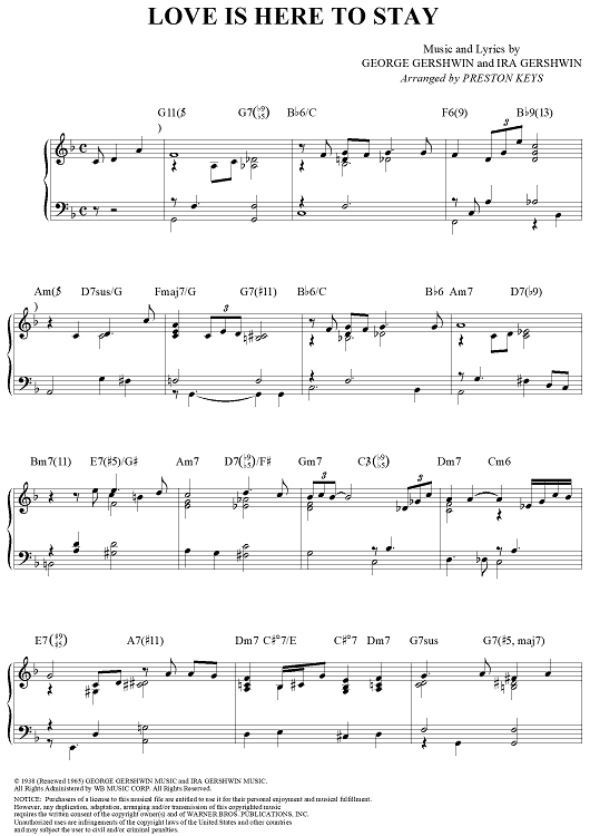 Digital Sheet Music for Love Is Here to Stay by George Gershwin, Ira Gershwin, Preston Keys scored for Piano Solo; id:284800