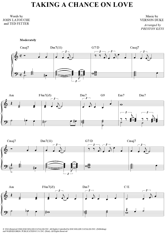 Digital Sheet Music for Taking a Chance on Love by Vernon Duke, John La Touche, Preston Keys, Ted Fetter scored for Piano Solo; id:284803