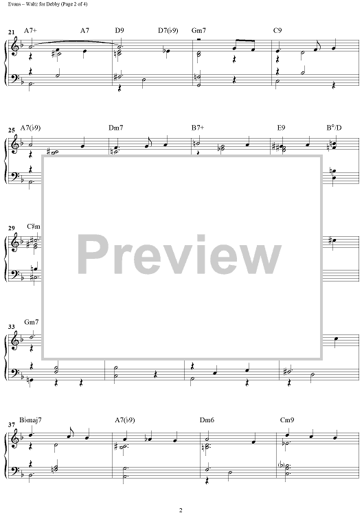 Digital Sheet Music for Waltz for Debby by Bill Evans, Preston Keys, Gene Lees scored for Piano Solo; id:284765