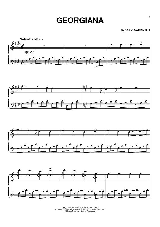 Digital Sheet Music for Georgiana by Dario Marianelli scored for Piano; id:389125