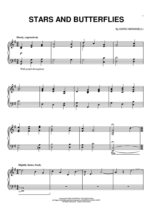 Digital Sheet Music for Stars And Butterflies by Dario Marianelli scored for Piano; id:389132