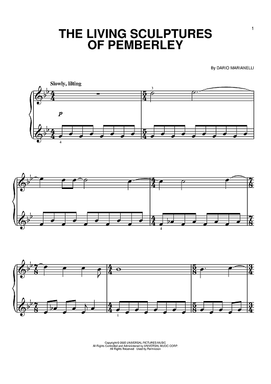 Digital Sheet Music for The Living Sculptures Of Pemberley by Dario Marianelli scored for Easy Piano; id:390999