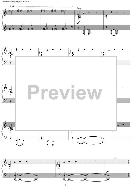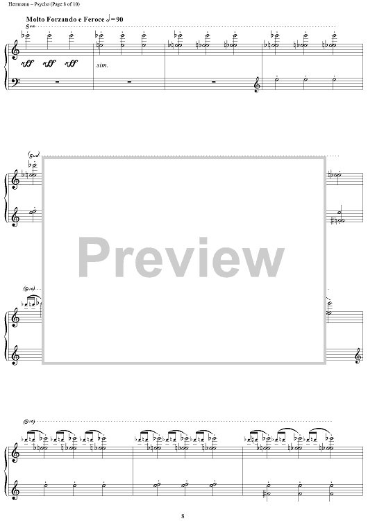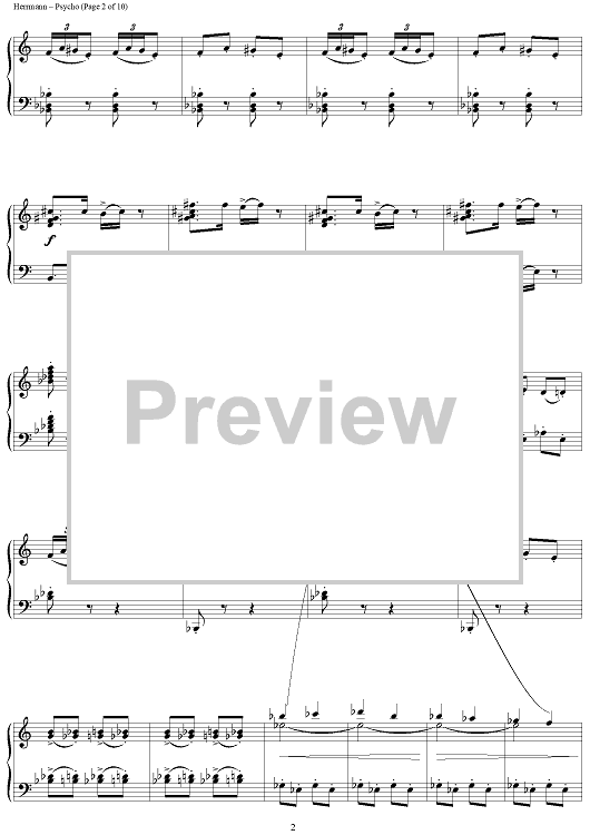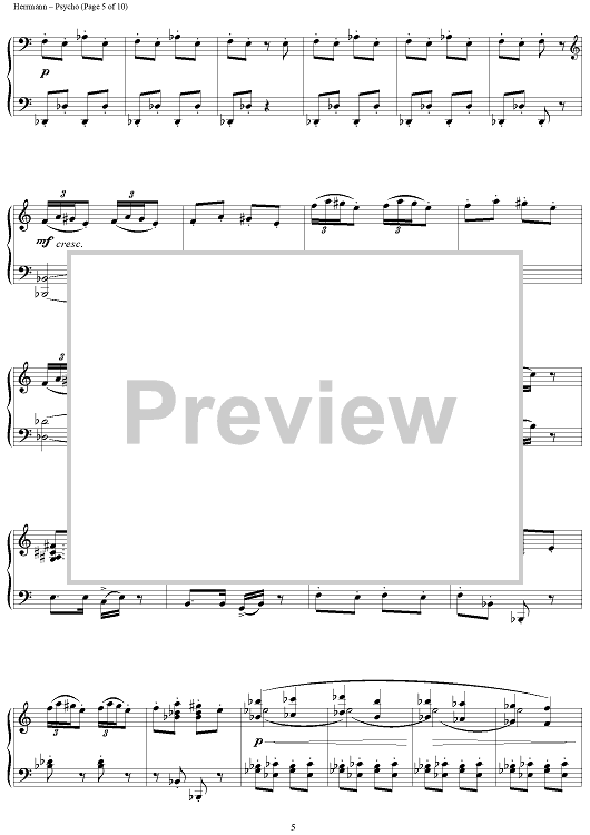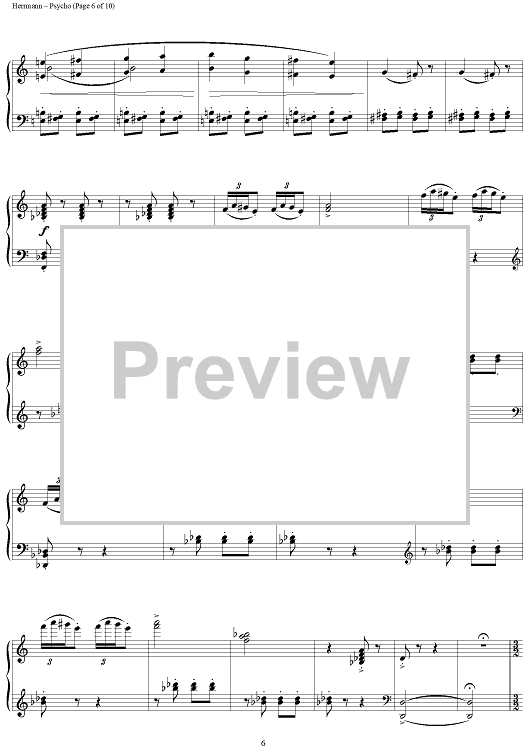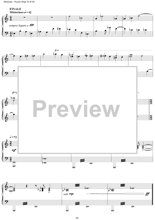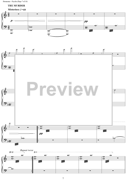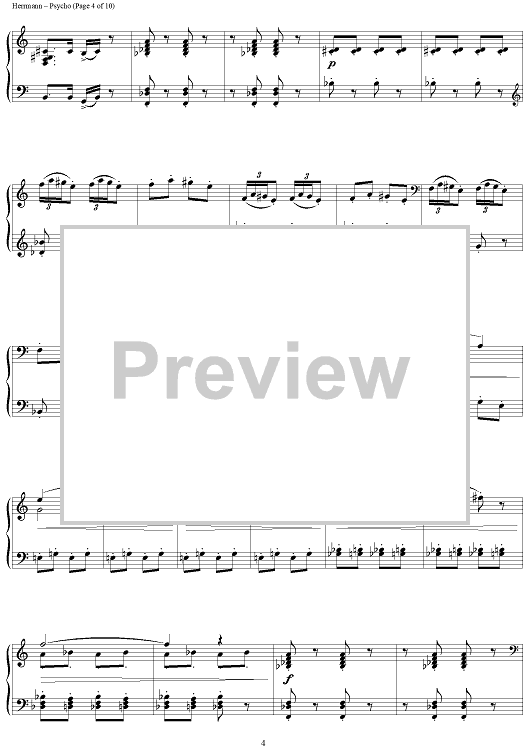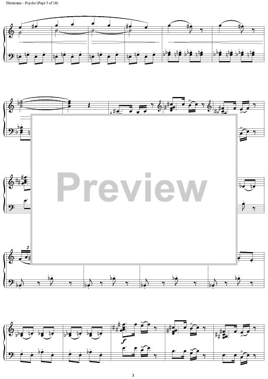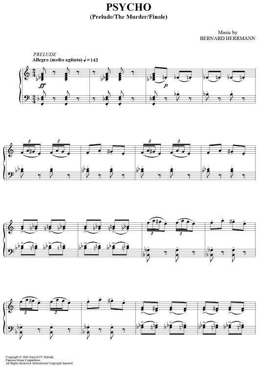 Digital Sheet Music for Psycho (Prelude/The Murder/Finale) by Bernard Herrmann scored for Piano Solo; id:456362