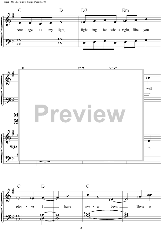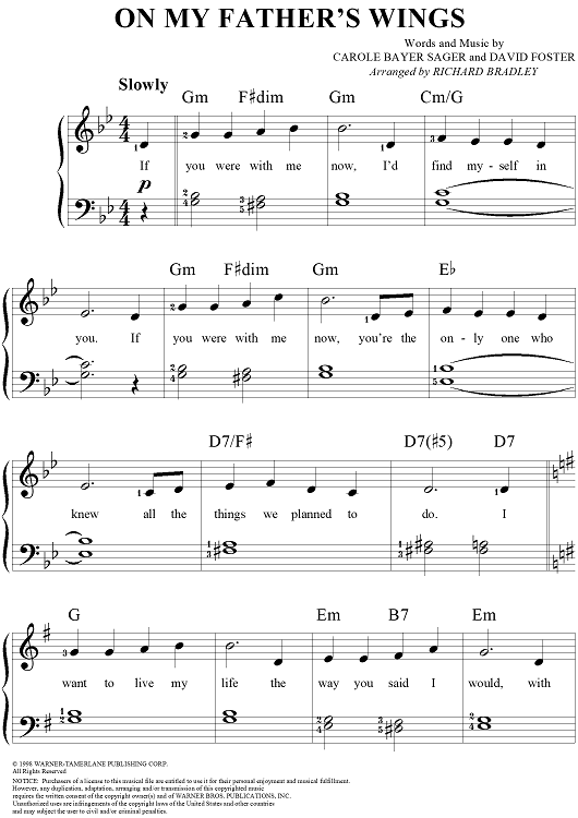 "On My Father's Wings" Sheet Music by Carole Bayer Sager