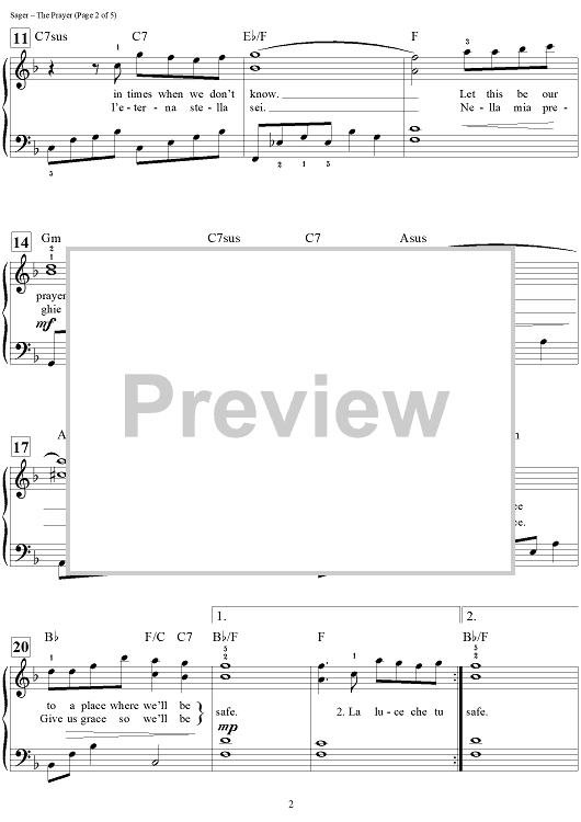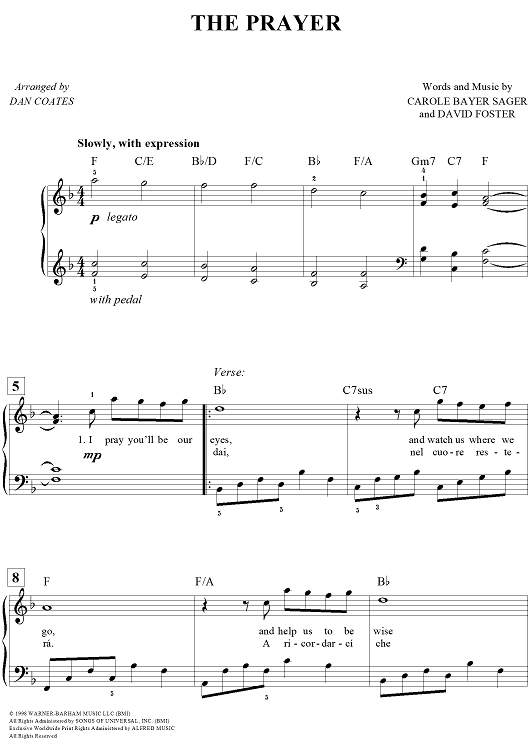 "The Prayer" won the Golden Globe Award for Best Original Song from the Quest for Camelot movie in 1999. It was nominated for an Academy Award for Best Original Song in 1999 and a Grammy Award for Best Pop Collaboration with Vocals in 2000.