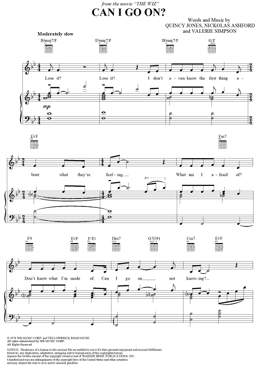 Digital Sheet Music for Can I Go On? by Nickolas Ashford, Valerie Simpson, Quincy Jones scored for Piano/Vocal/Chords; id:120559